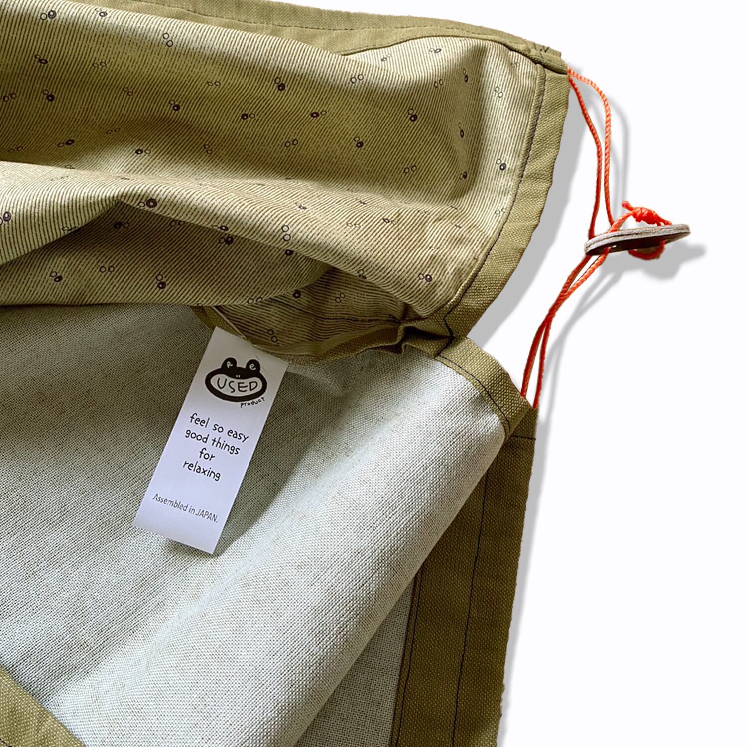 ●古着や端切れをリユースした商品のため、ひとつひとつ色目に個体差があります。また、生地に歪みやキズがみられる場合がありますが、この商品の特徴とご了承いただき、お買い求めください。
